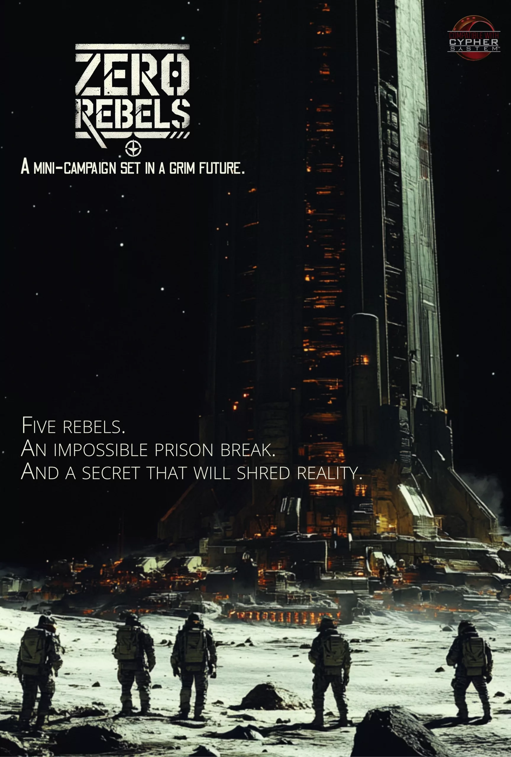 Zero Rebels is a story of vengeance and rescue. Play style is cooperative storytelling with a heavy lean on emotional role-play. There will be death, dismemberment, body horror, suffocation, and much worse. Children are not a part of this story.